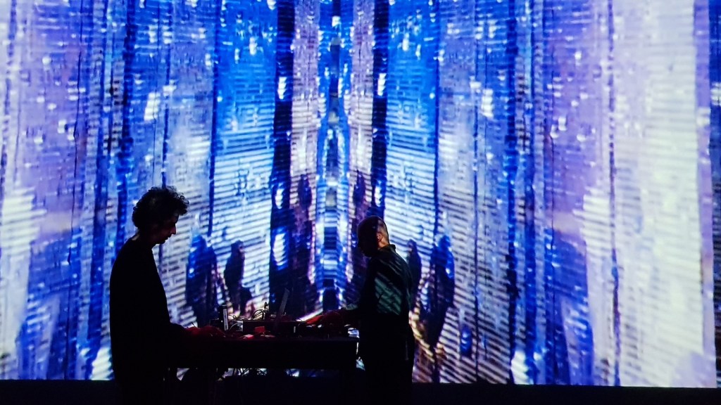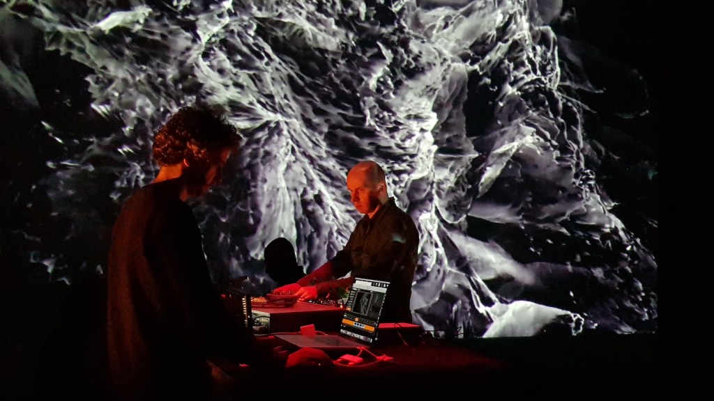 ‘’The Island’ is a sensorial audiovisual performance by Kurt d’Haeseleer & Franck Vigroux, inspired by a number of stories of islands and valleys destined to be submerged by the construction of a hydroelectric dam, causing deep human and geographic upheaval. The immersions of Naussac in Lozère (a village engulfed in 1980), the novel Farewell, little island” by Valentin Raspoutine, or the Three Gorges dam in China ( which is so big it influenced the speed of rotation of Planet Earth) spring to mind.