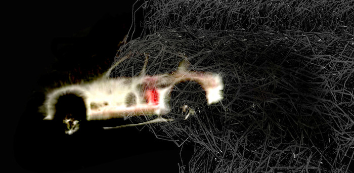 A car crashes and lands next to the road into a strange and wild space, which seems out of time. Gradually the topography of the place where real and unreal seem to merge is revealed. Drawing both from the world of the English writer JG Ballard (author of notably “Crash” and “Concrete Island”) and from the personal experience of a road accident, “Flesh” explores the instant that follows the shock, the short time when time seems to stop or expand. Car carcasses take the form of moving objects, highway viaducts become huge Golems, car engines seem to levitate above a sea of ice. Through this flood of images and sensations, the spectator shares the same experience as an injured driver crossing an unknown dimension, a hallucinogenic journey.
